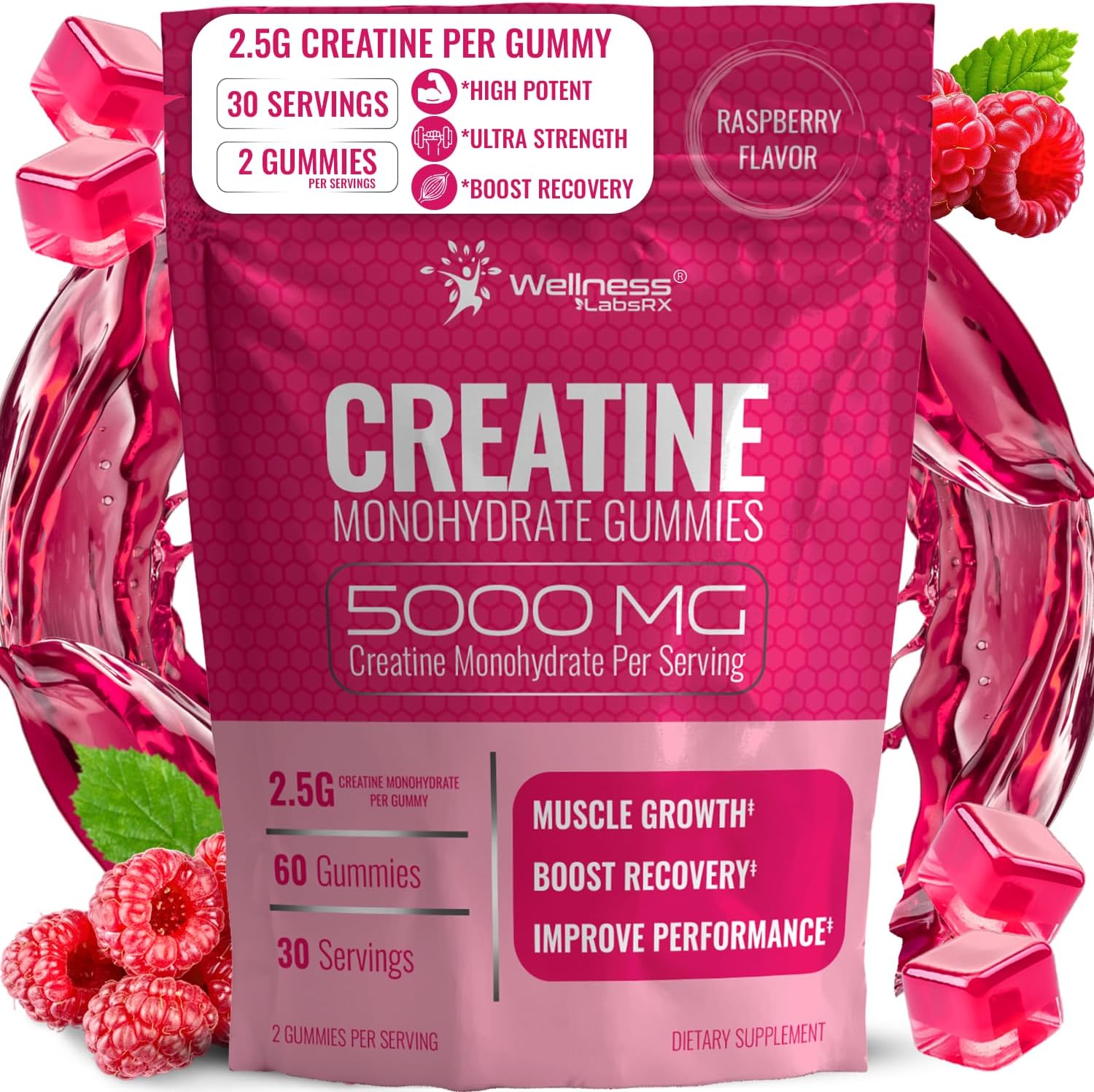 Each serving includes creatine monohydrate in a flavorful gummy format. Enjoy the convenience of a 30-day supply (2 gummies per day) to complement your lifestyle.