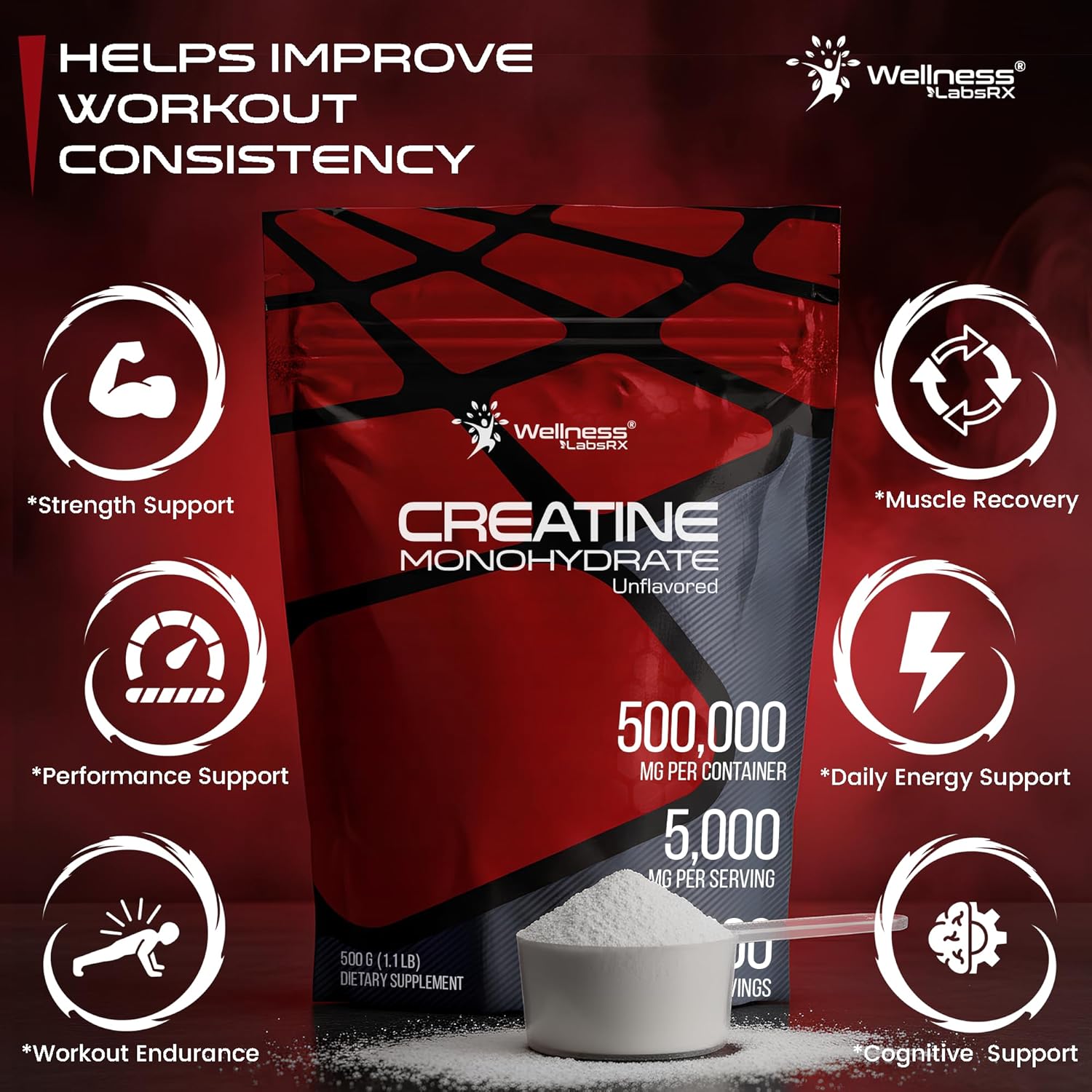 100% PURE CREATINE MONOHYDRATE POWDER: Premium creatine powder made with pure, micronized creatine monohydrate to support muscle strength, power, and high-intensity workout performance for men and women.